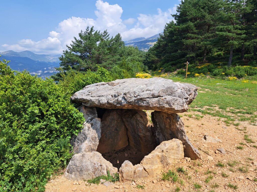 Restos de cista pirenáica de Lizara, a la vuelta del refugio de esquí de fondo de Lizara, arriba del valle de Aragüés. El megalito está muy destrozado, como casi todas las cistas de altura existentes desde el Atlántico al Mediterráneo. El túmulo que se conserva es importante, ya que del esqueleto de la cámara sólo se conservan tres ortostatos enhiestos.