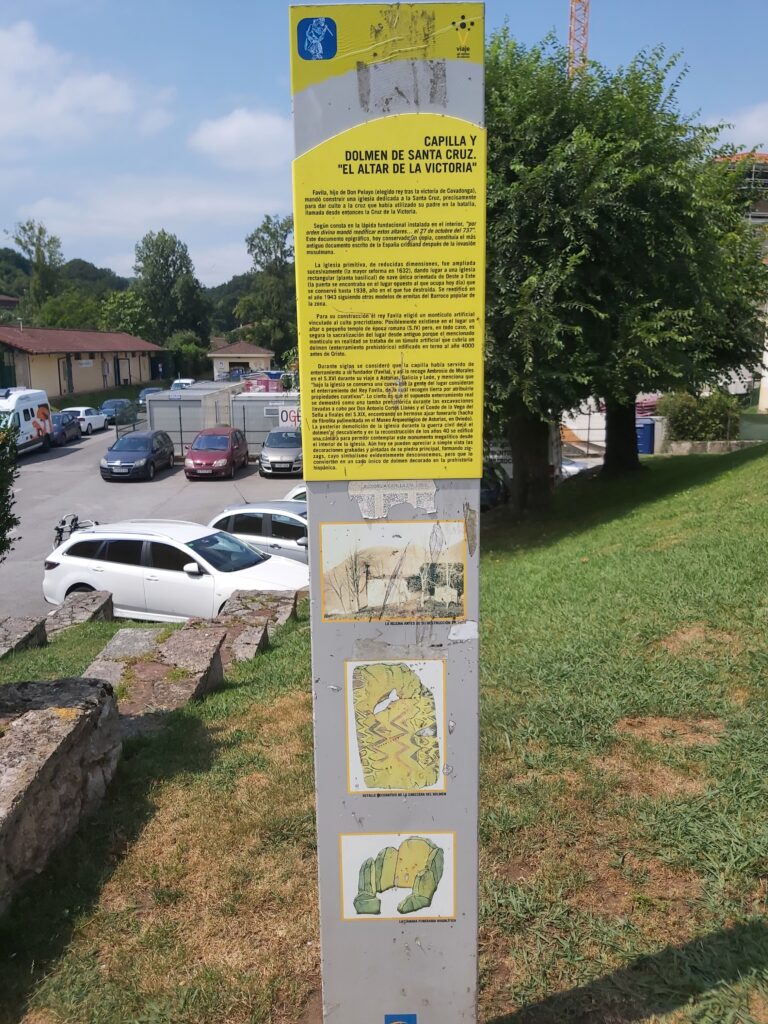 La historia del dolmen de la Capilla de la Santa Cruz continúa con los estudios de Assas, Rada, Delgado y el Conde de la Vega del Sella, que paga y firma una publicación sobre el megalito en 1919. Sin embargo, nuestra Guerra Civil demolió la capilla, y lo que vemos ahora (recurrente), es una nueva reconstrucción.