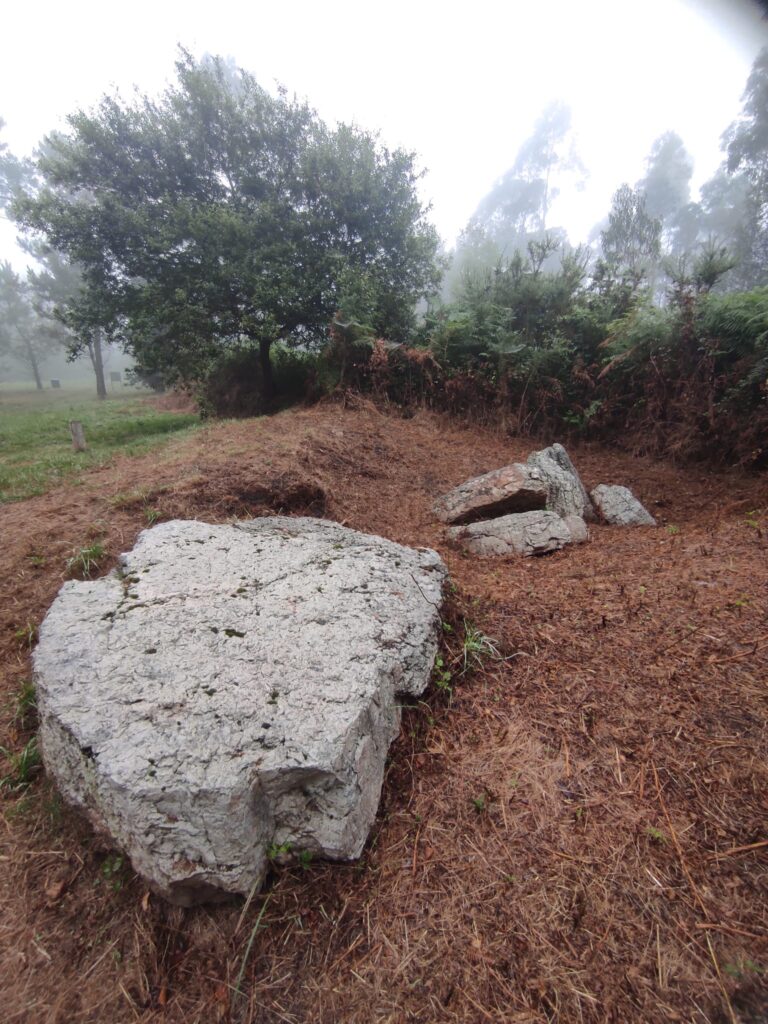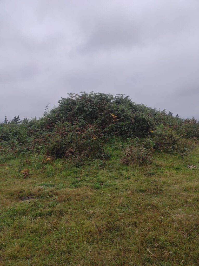 El túmulo, que perfectamente puede tener más 50 metros de diámetro, nos recuerda que dentro pudo haber una cámara funeraria. Lo que no se discute, si no se asiente , es que se trata de la típica reutilización histórica de un lugar sagrado ancestral por otro lugar religioso más moderno.