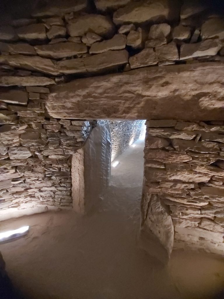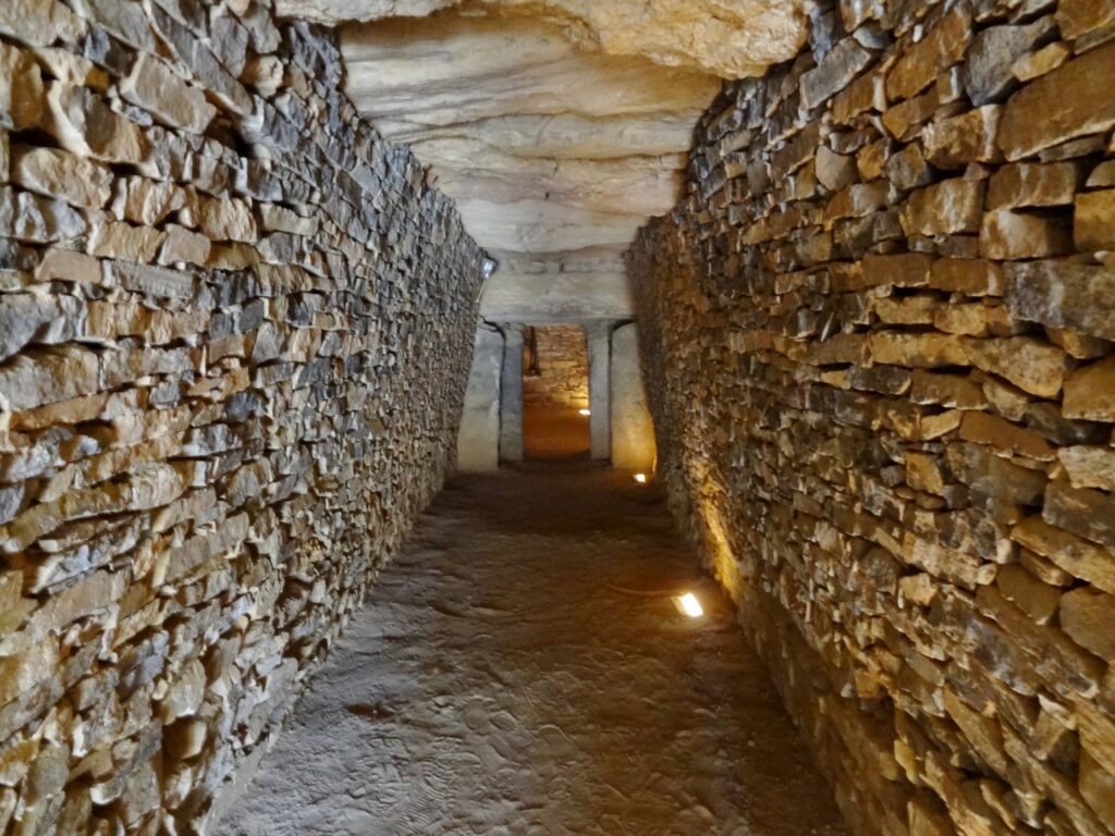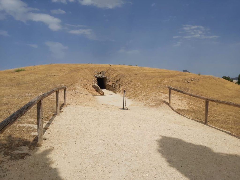 Como decíamos, su conservación es notable. ¿Y respecto su tamaño? Ya hemos hablado de un túmulo de más de 70 metros de diámetro que alberga un tholos de 28 metros de largo en total (desde la apertura hasta el final de la segunda cámara). Una verdadera estructura gigante. ¿Y su datación? Tardía, alrededor del 2.200 a.C., aunque hasta hace poco decíamos que era del 1.700 a. C.