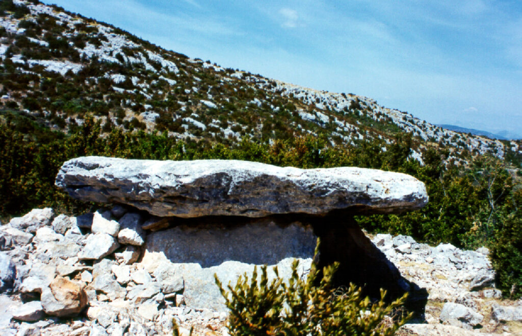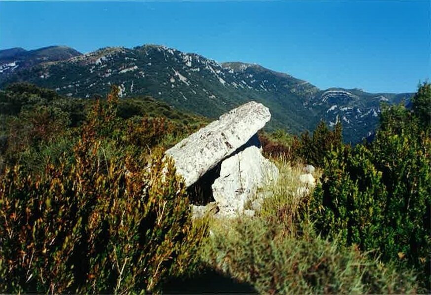 Restos de cista pirenáica de Lizara, a la vuelta del refugio de esquí de fondo de Lizara, arriba del valle de Aragüés. El megalito está muy destrozado, como casi todas las cistas de altura existentes desde el Atlántico al Mediterráneo. El túmulo que se conserva es importante, ya que del esqueleto de la cámara sólo se conservan tres ortostatos enhiestos.